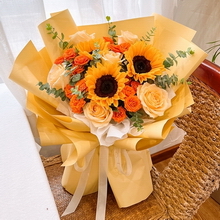 答:花語花藝提供花束、花籃等定制服務。