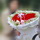包 裝淺色卷邊紙,白色網(wǎng)紗外圍搭配包裝,心形花束