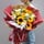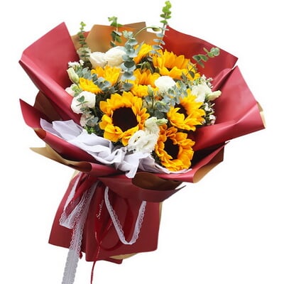 花 材7枝向日葵,白色桔梗、尤加利葉間插