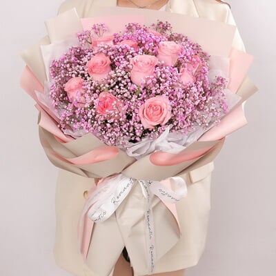 花材:玫瑰花 粉玫瑰 滿天星 送祝福