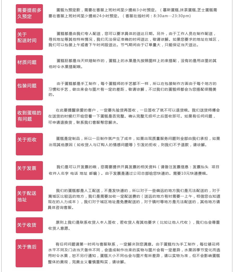 3.已安排的訂單,非我方的臨時原因造成的不能配送,仍需付款;
