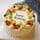 3支香檳玫瑰,3支多頭白百合,相思梅點綴;圓形水果蛋糕,中間裱字Happy,Birthday,外圍時令水果