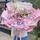 包 裝白色綿紙內(nèi)襯,粉色霧面紙多層多角圓形包裝,粉色絲帶花結(jié)束扎