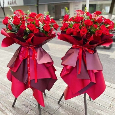 紅玫瑰+紅掌開業(yè)花籃一對(duì)