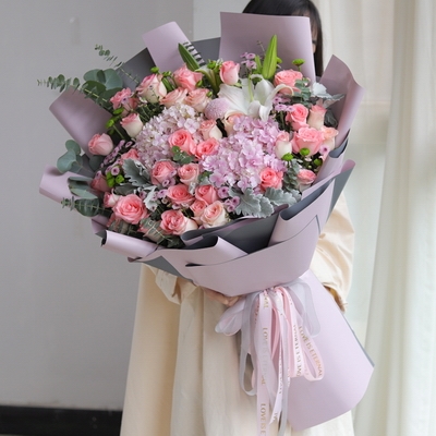 花材:玫瑰花 百合款 粉玫瑰 送祝福