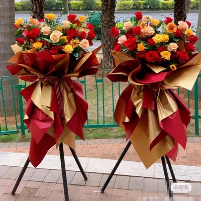 包 裝紅色+金色雙面霧面紙包裝,1.6m高三腳架花籃一對