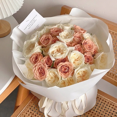 花材:玫瑰花 白玫瑰 送祝福 卡布