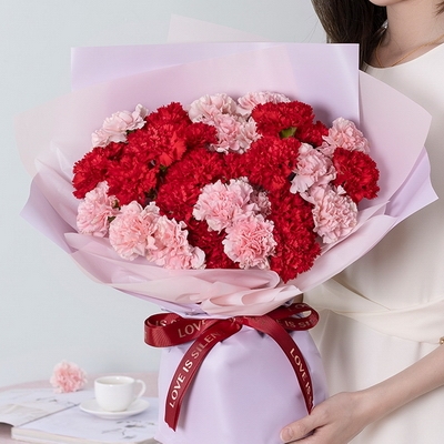 花 材17支紅色康乃馨,16支粉色康乃馨