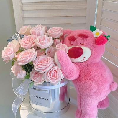 花 材33枝粉佳人玫瑰,1個(gè)草莓趴趴熊