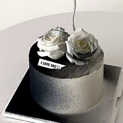 ins風高級感蛋糕,新鮮水果夾層,2朵黑騎士玫瑰花,煙花蠟燭搭配